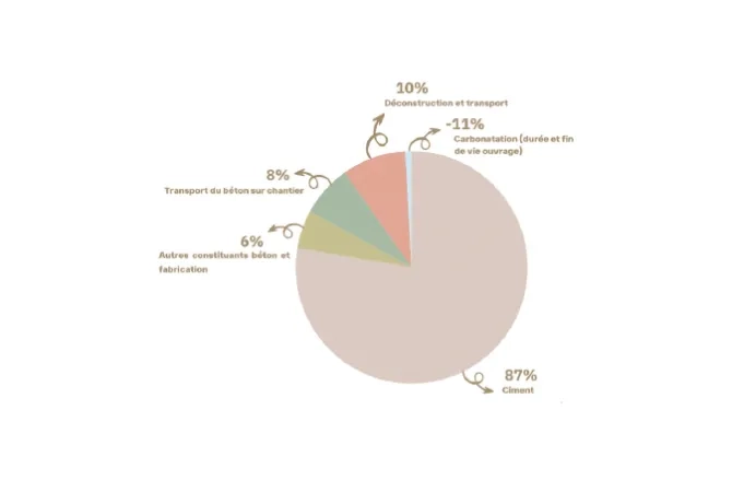 • une contribution de l’ordre de 90 % du liant à l’empreinte carbone du béton.