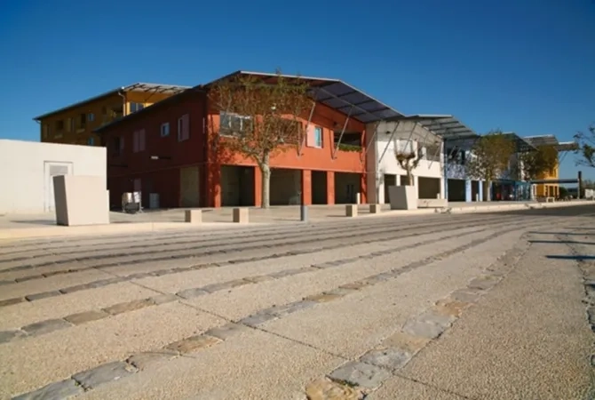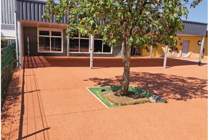 Tous les bétons d’aménagement sont susceptibles d’être décarbonés. Concernant la réduction de l’empreinte carbone des aménagements présentés dans les photos 6 à 13, il a été fait le choix de préciser uniquement une estimation fondée sur la nature du ciment utilisé, en considérant :