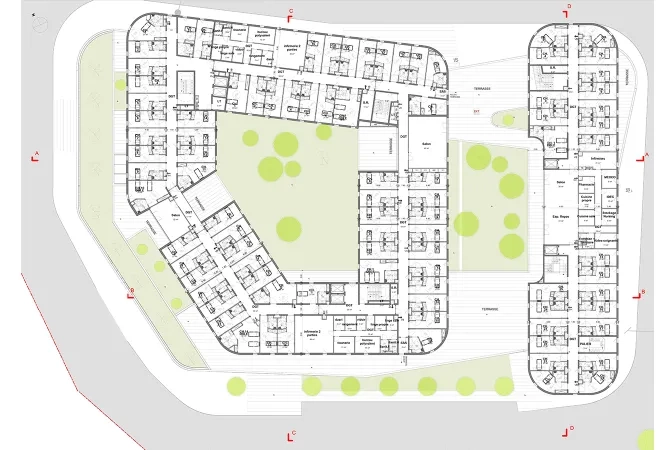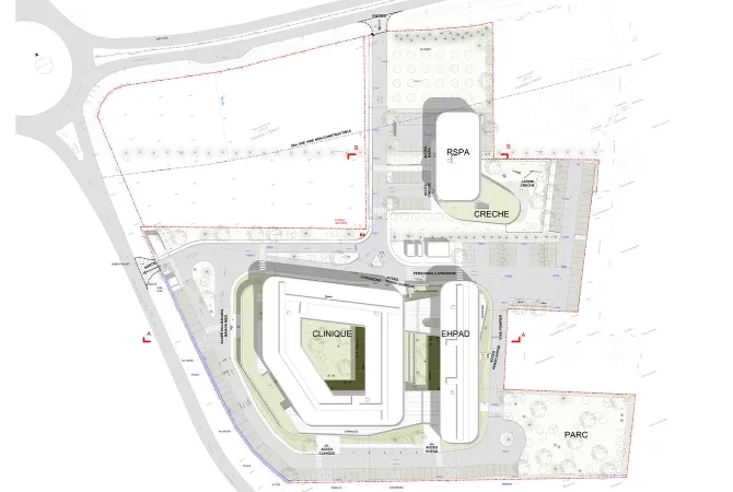 - Programme : clinique de 136 lits, Ehpad, résidence services seniors de 15 logements et une crèche ; maison médicale, centre de kinésithérapie, salle de sport rééducative et espace de restauration.