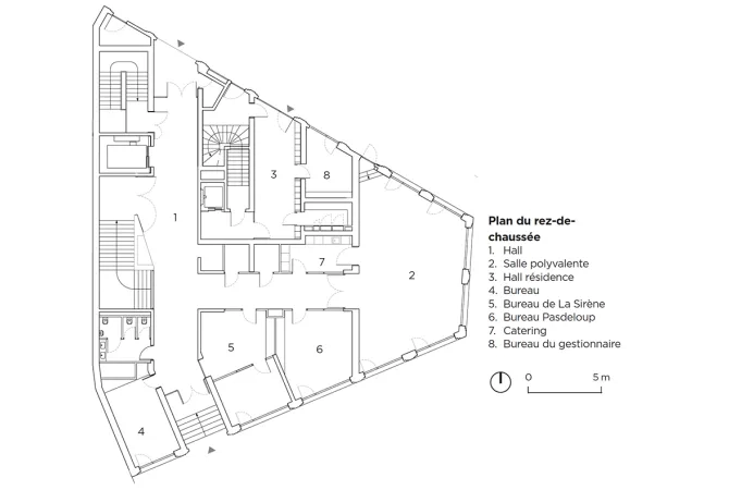 Dans un contexte bâti composite, l’opération articule l’équipement musical de La Sirène et une résidence pour étudiants et jeunes travailleurs.