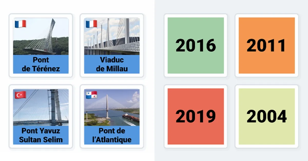 Associez ces ponts emblématiques à leurs dates d'inauguration respectives