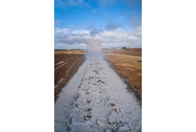 - Épandage de la chaux (ou, à défaut, du liant ROC TR) ;