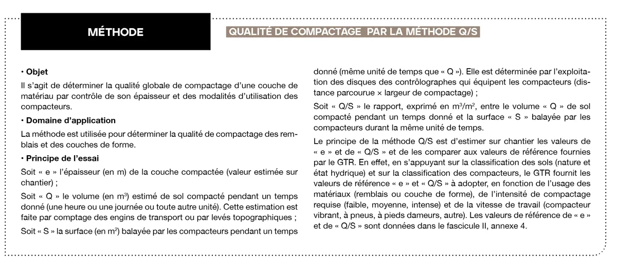 Pour l’ensemble des couches, la qualité de compactage (q3) a été validée par la méthode Q/S. Des analyses en laboratoire et des contrôles quotidiens ont été réalisés tout au long du chantier, afin de maîtriser la teneur en eau des matériaux.
