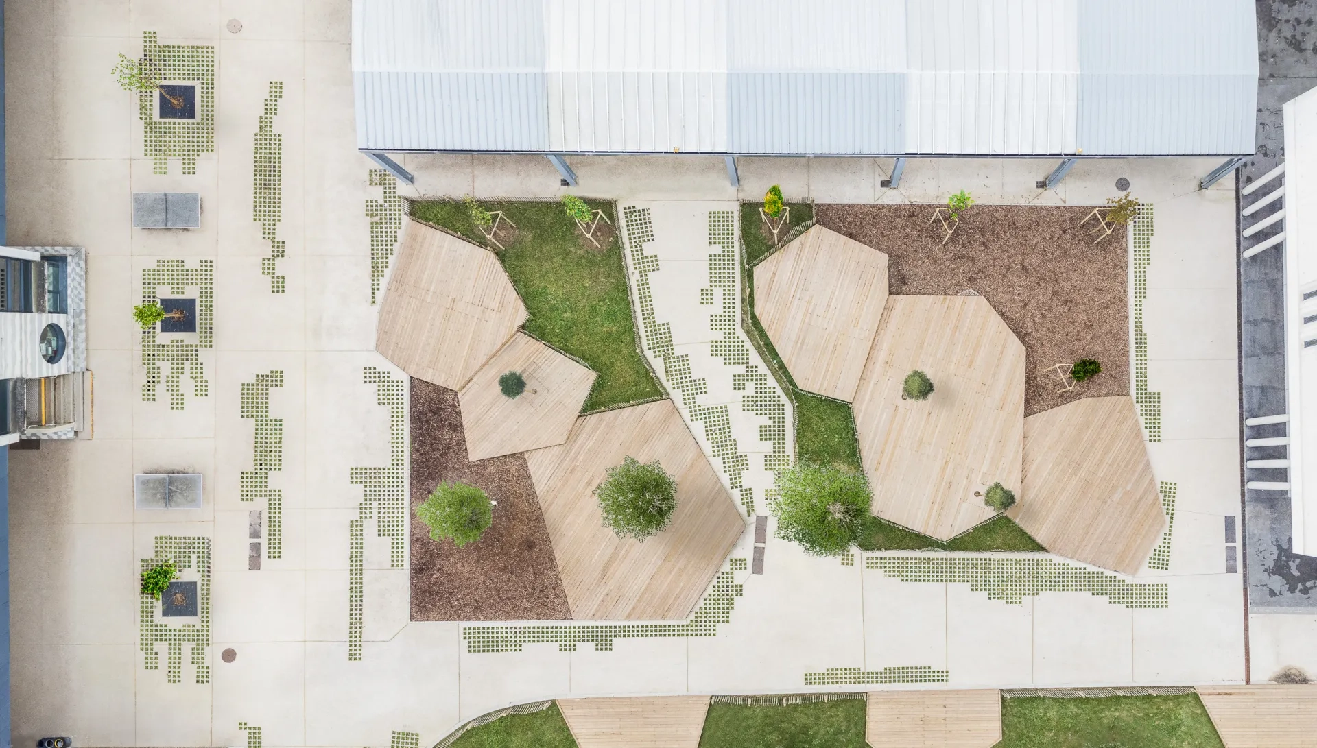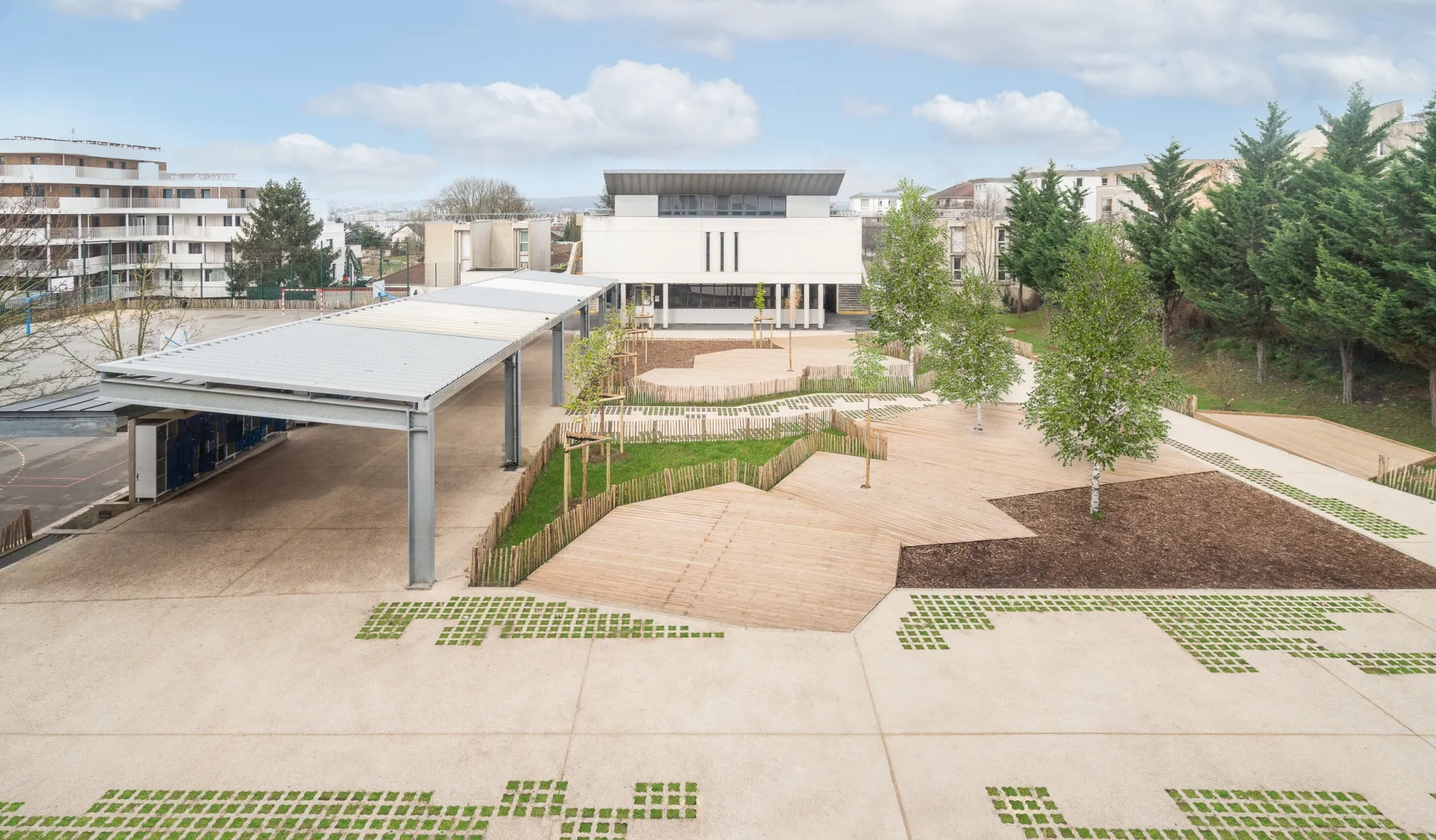 Ce projet est un exemple frappant de désimperméabilisation des surfaces, de végétalisation et d’utilisation du béton clair, ce qui améliore la pérennité des infrastructures. « Nous avons intégré des solutions de gestion des eaux pluviales et choisi des matériaux durables pour minimiser l’impact environnemental », précise Mathieu Morel. Ces choix permettent de réduire les ICU et d’améliorer le confort des usagers.